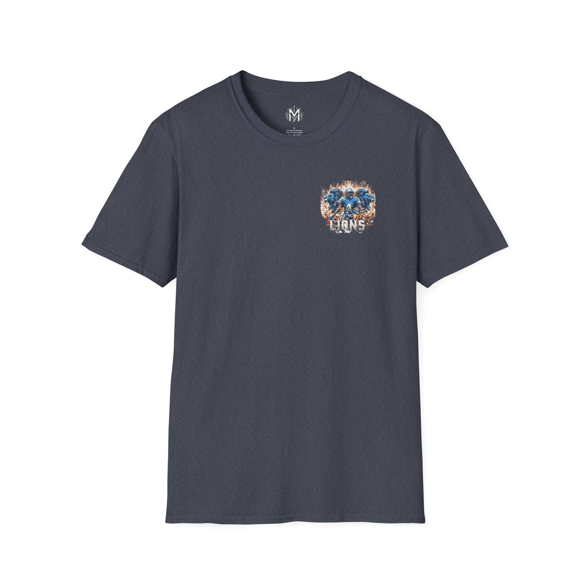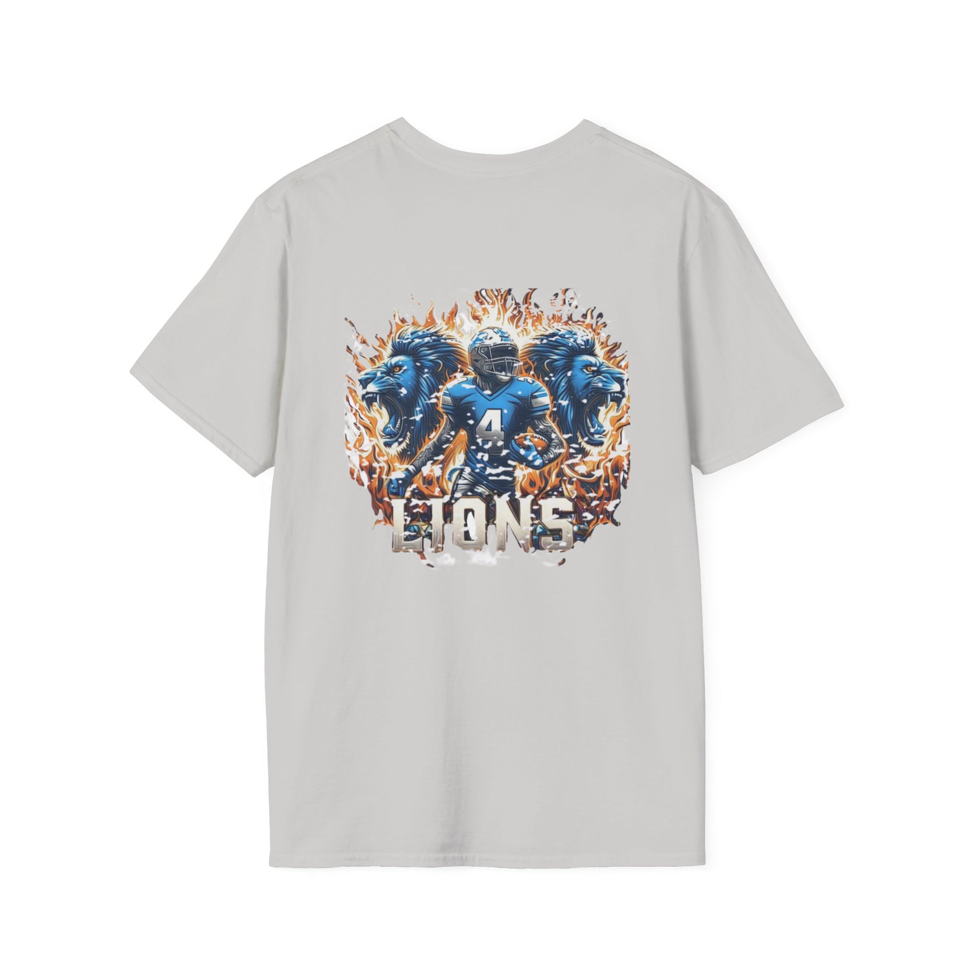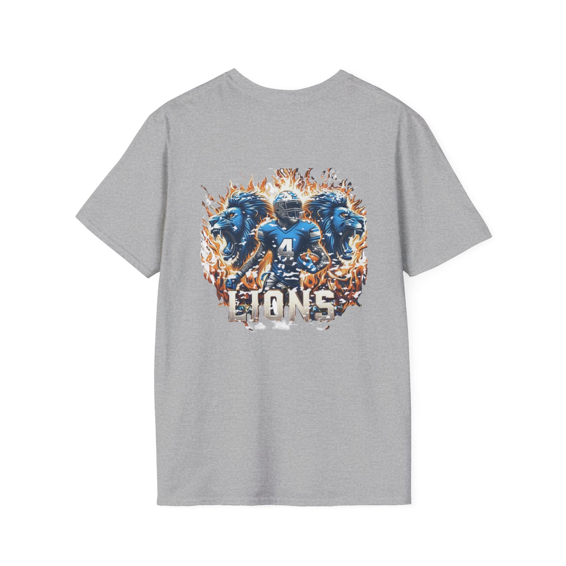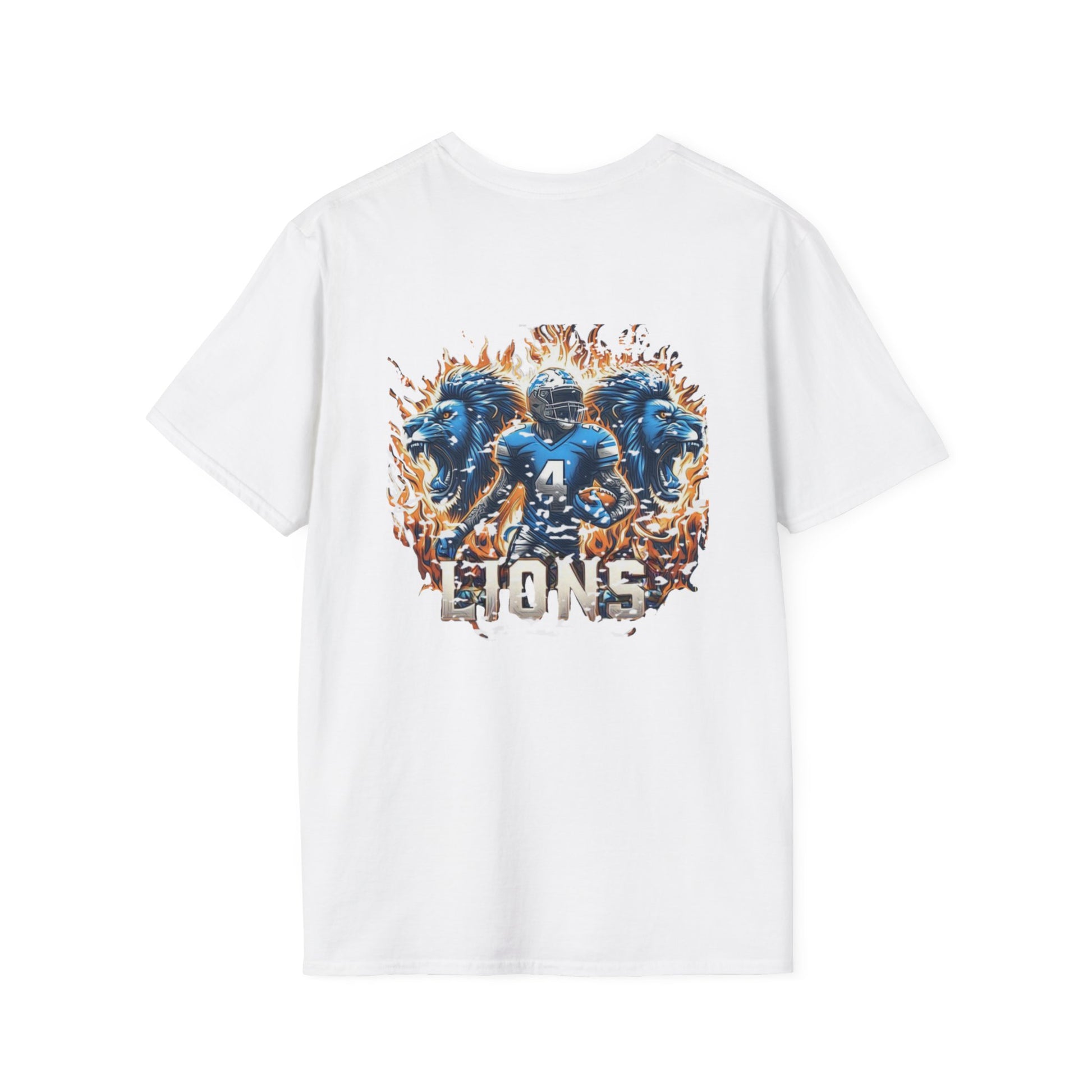 Elevate your game day wardrobe with the exclusive Detroit Lions Mens American Football Graphic Tee. This high-quality t-shirt features a dynamic, full-sized graphic on the back, showcasing the energy and spirit of your favorite team. Complementing the bold statement at the rear is a tastefully sized matching emblem on the front left chest, adding a touch of team pride that’s visible from every angle. Crafted for comfort and style, this tee is perfect for any die-hard Detroit Lions fan looking to support their team both at home and in the stands.