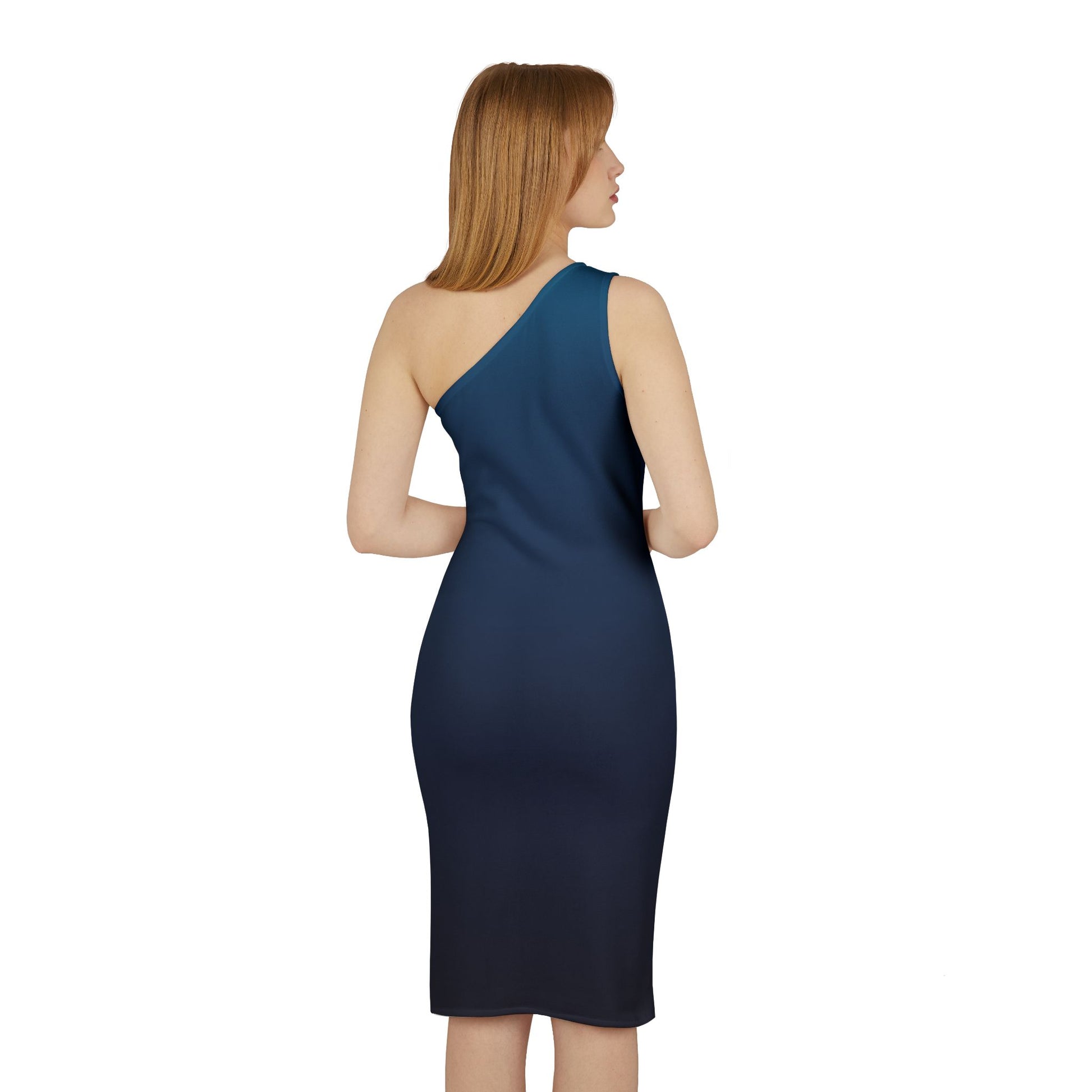 Embrace a unique kind of elegance in our ombre navy one-shoulder dress! Designed with a fitted silhouette to accentuate your curves, this knee-length sleeveless piece is an ideal choice for any evening event. Shop now to make a statement at your next special occassion.