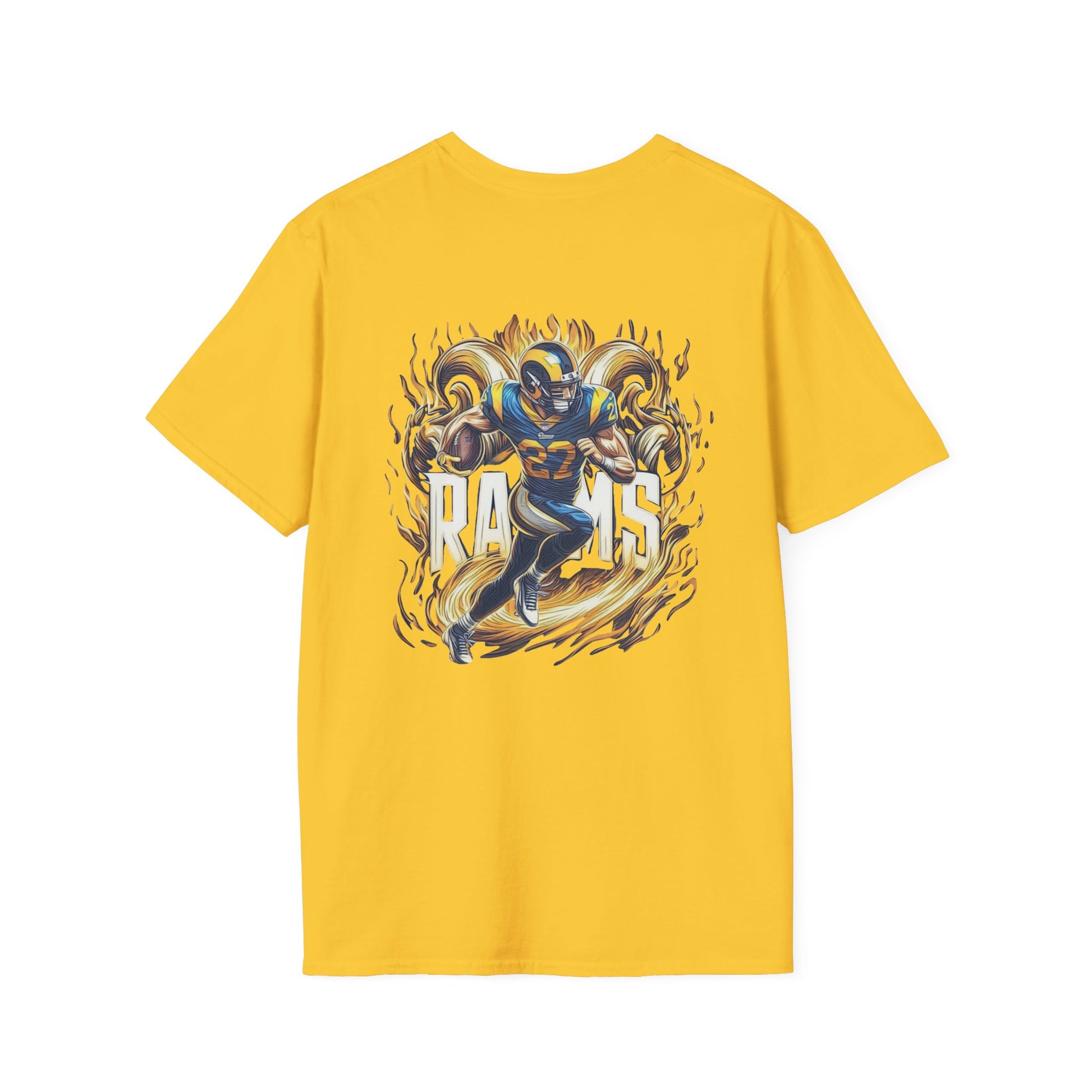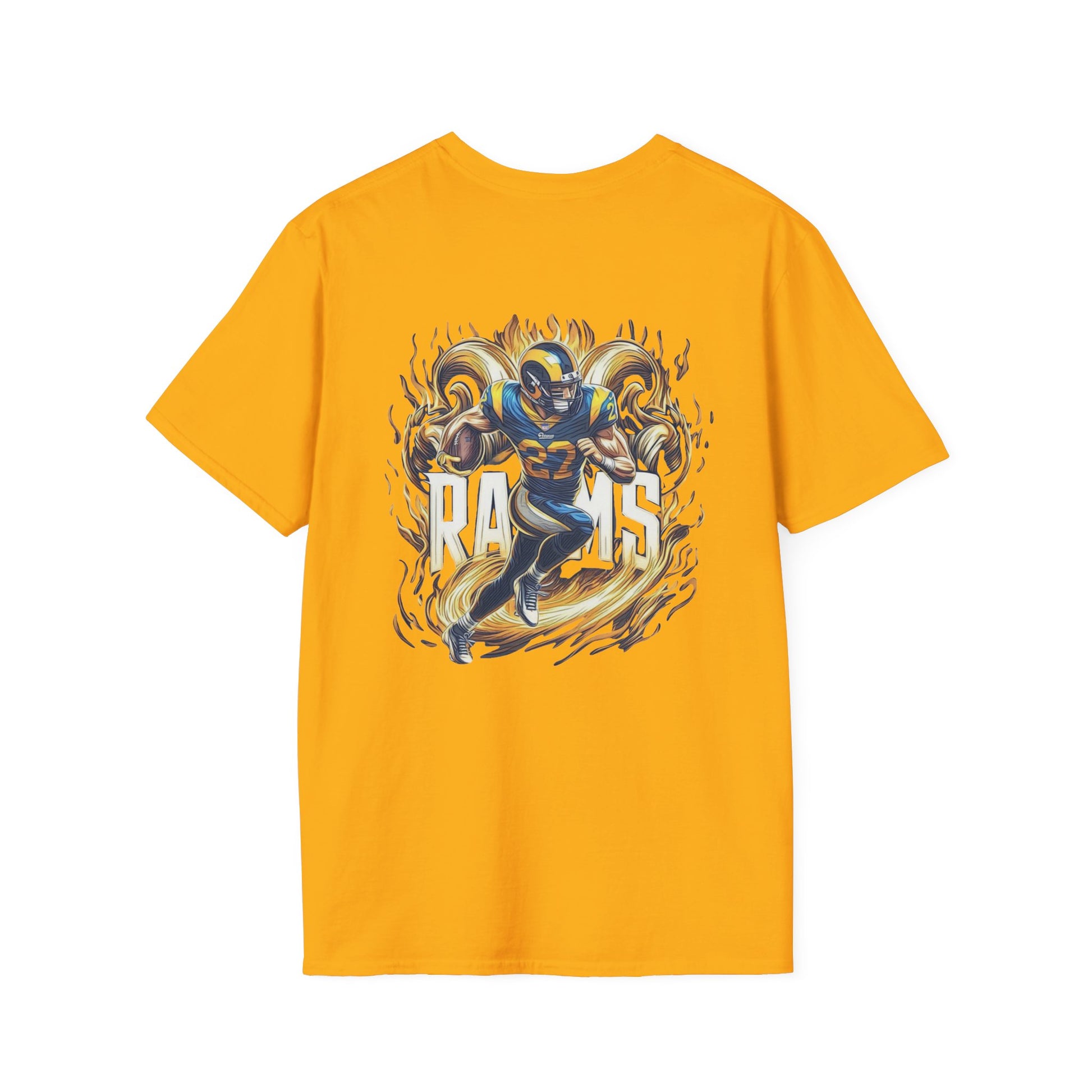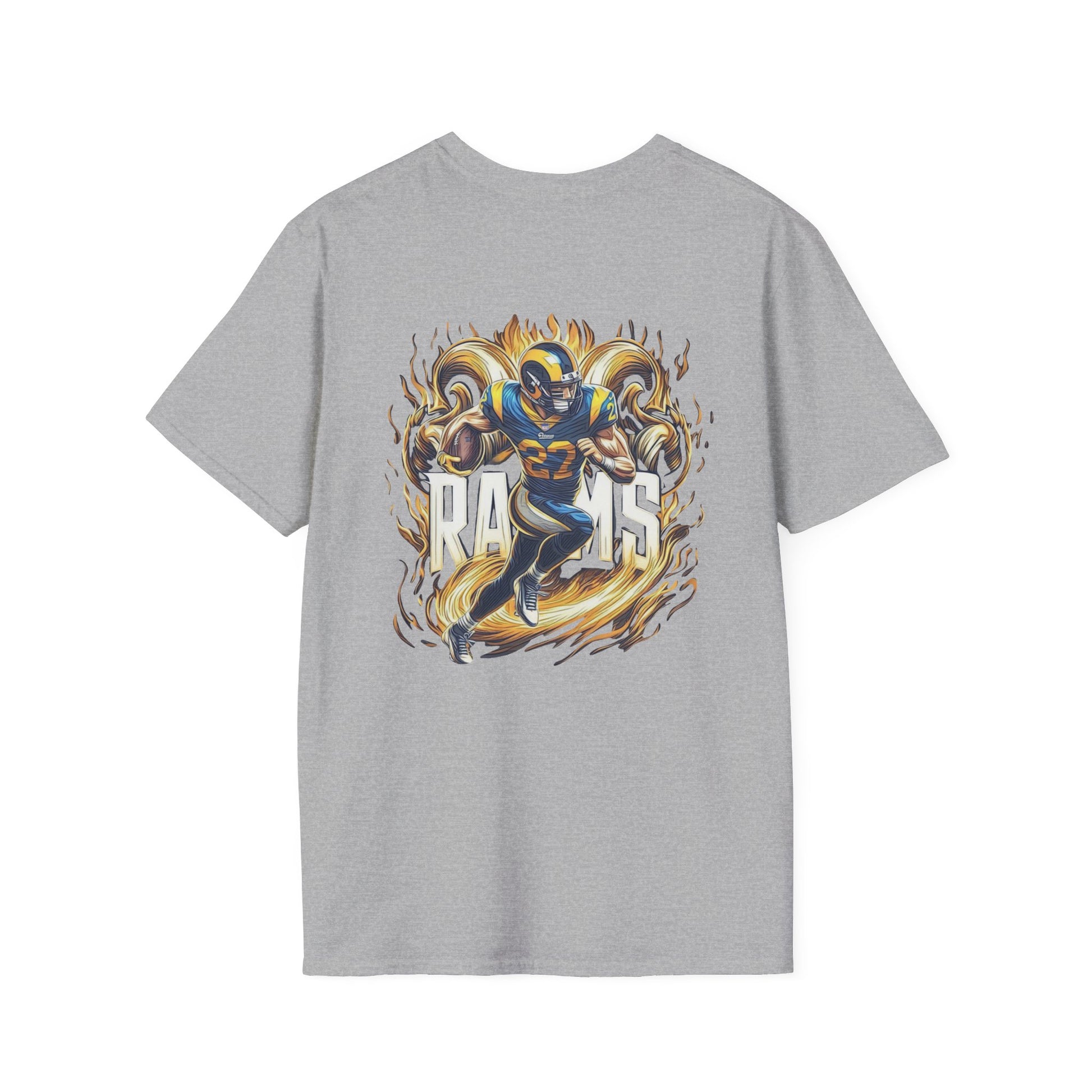 Elevate your game day wardrobe with the exclusive LA Rams Mens American Football Graphic Tee. This high-quality t-shirt features a dynamic, full-sized graphic on the back, showcasing the energy and spirit of your favorite team. Complementing the bold statement at the rear is a tastefully sized matching emblem on the front left chest, adding a touch of team pride that’s visible from every angle. Crafted for comfort and style, this tee is perfect for any die-hard LA Rams fan looking to support their team both at home and in the stands.
