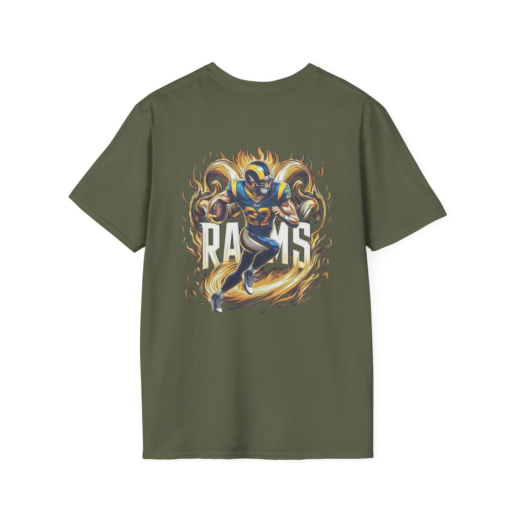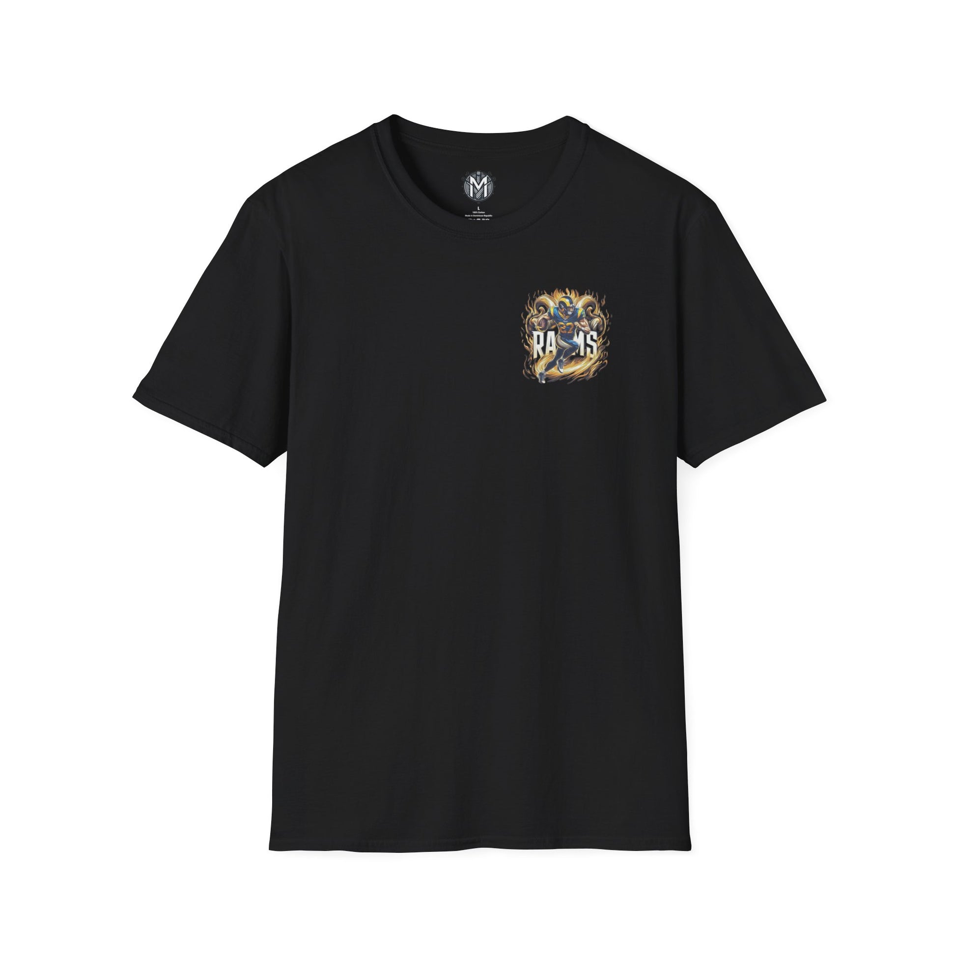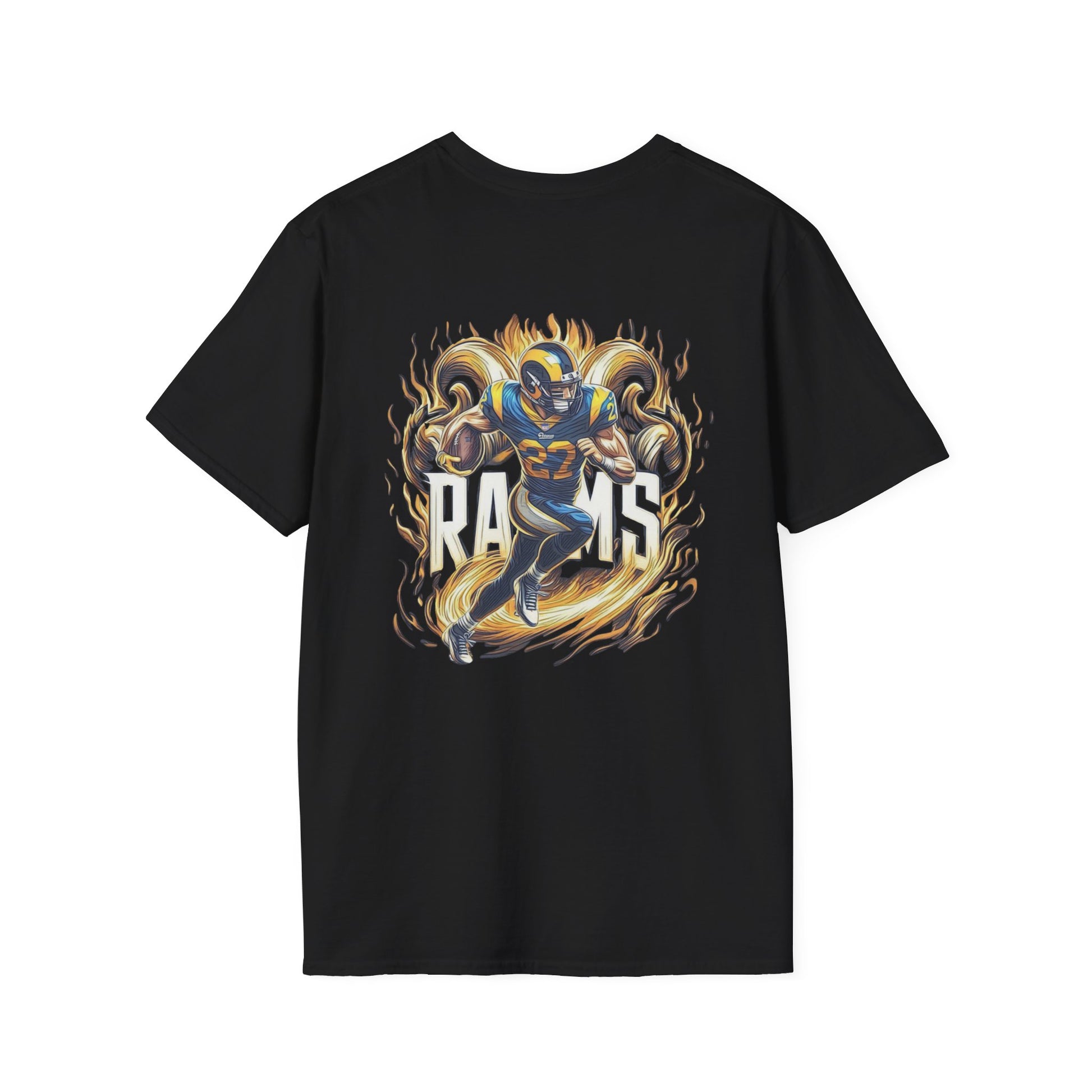 Elevate your game day wardrobe with the exclusive LA Rams Mens American Football Graphic Tee. This high-quality t-shirt features a dynamic, full-sized graphic on the back, showcasing the energy and spirit of your favorite team. Complementing the bold statement at the rear is a tastefully sized matching emblem on the front left chest, adding a touch of team pride that’s visible from every angle. Crafted for comfort and style, this tee is perfect for any die-hard LA Rams fan looking to support their team both at home and in the stands.