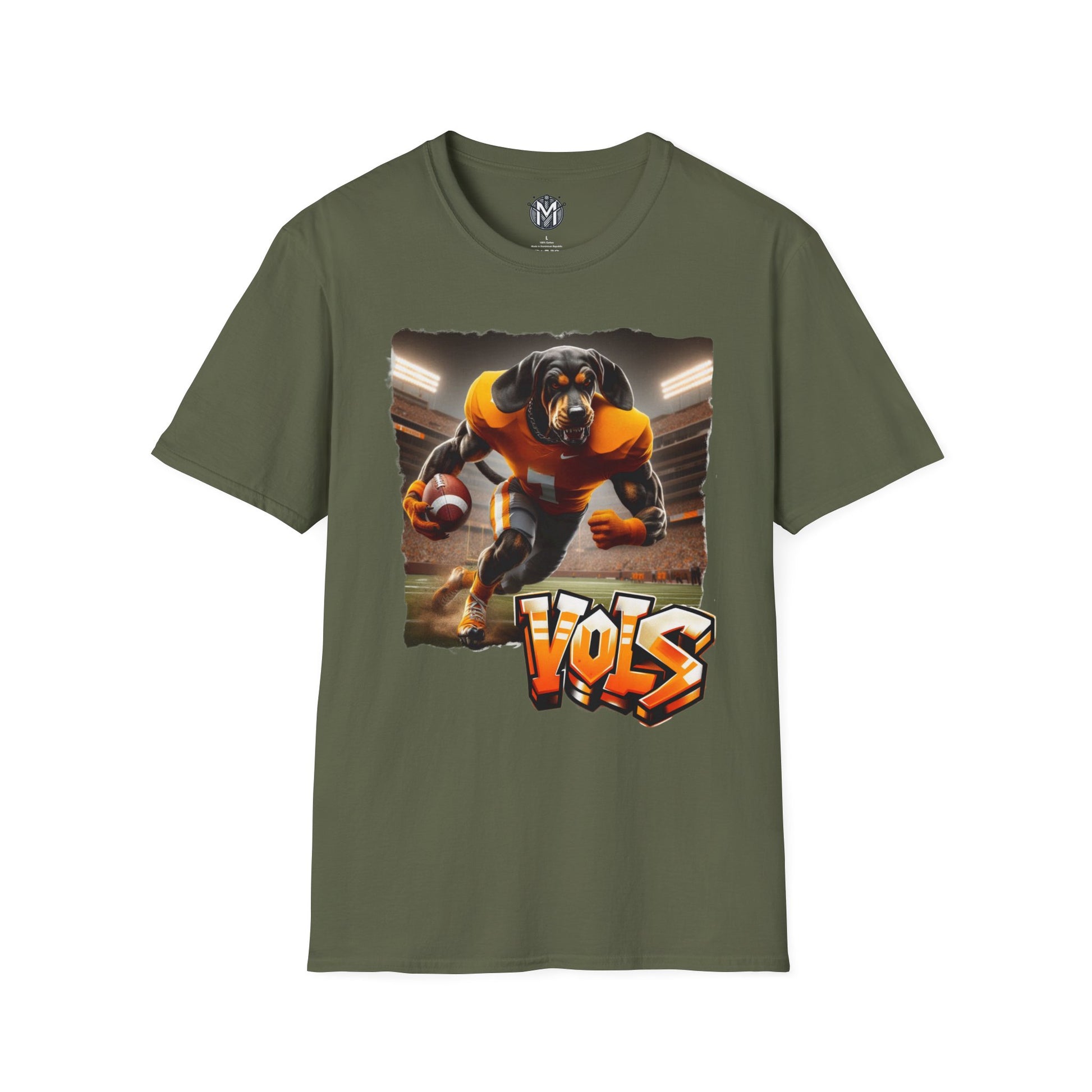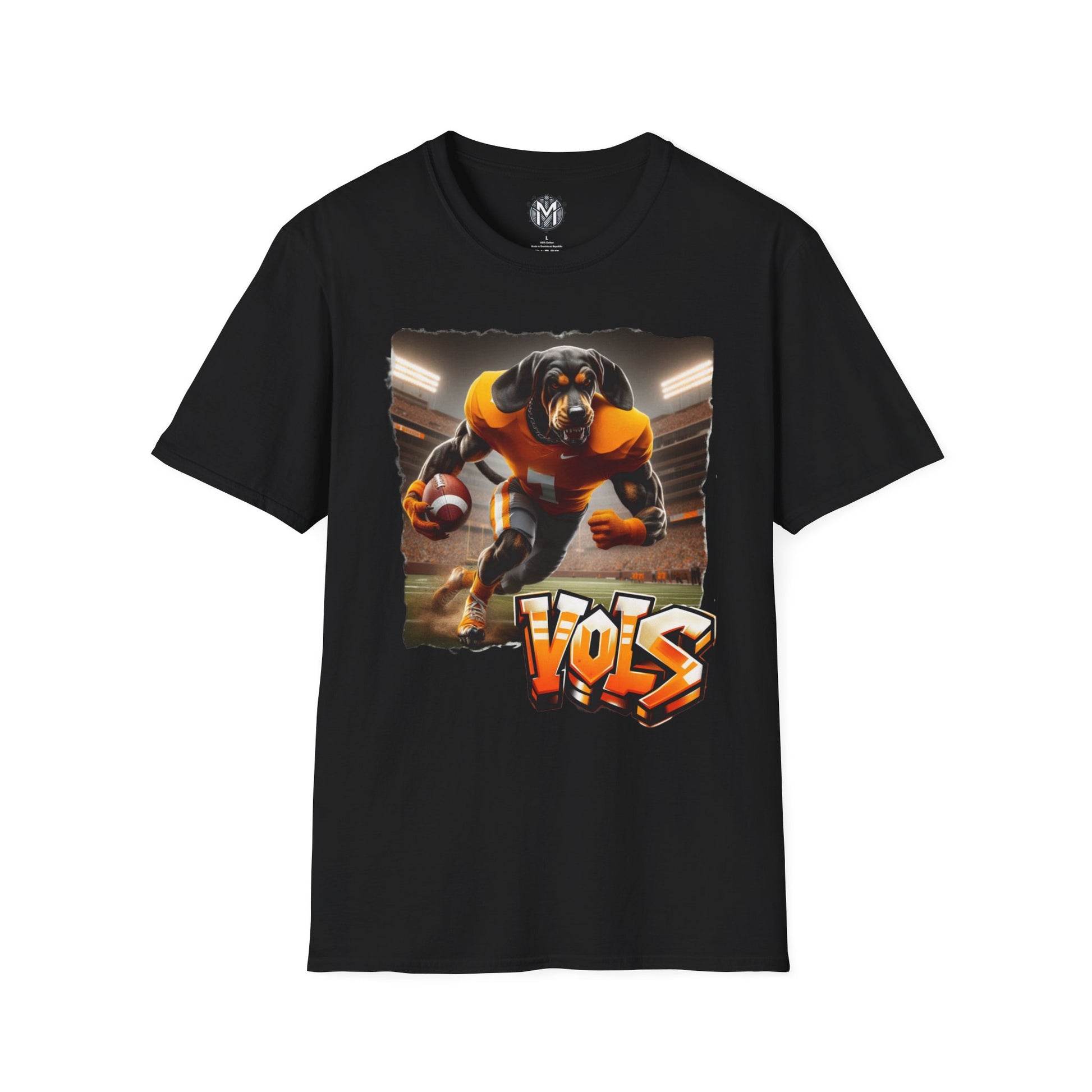 Show your team pride with this exclusive Tennessee Vols Mens College Football Graphic Tee. Featuring a dynamic illustration of the team’s mascot in action, complete with a football and bold “VOLS” text, this tee is perfect for game day or any day you want to support the Tennessee Vols. Made with comfortable and ethically sourced materials this t-shirt is designed to last. It’s a must-have for any dedicated Tennessee Vols fans and college football supporters.