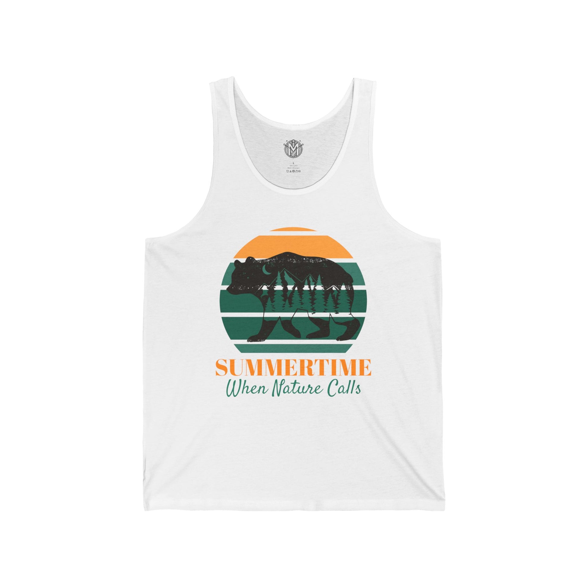 Embrace the call of the wild with our exclusive Summertime, When Nature Calls Mens Camping Outdoor Adventure Graphic Tank, perfect for camping aficionados. This stylish tank features a captivating circular design with a sunset, trees, and mountain silhouettes, evoking the spirit of summer adventures. Made for comfort and durability, it’s an ideal choice for your next outdoor excursion.