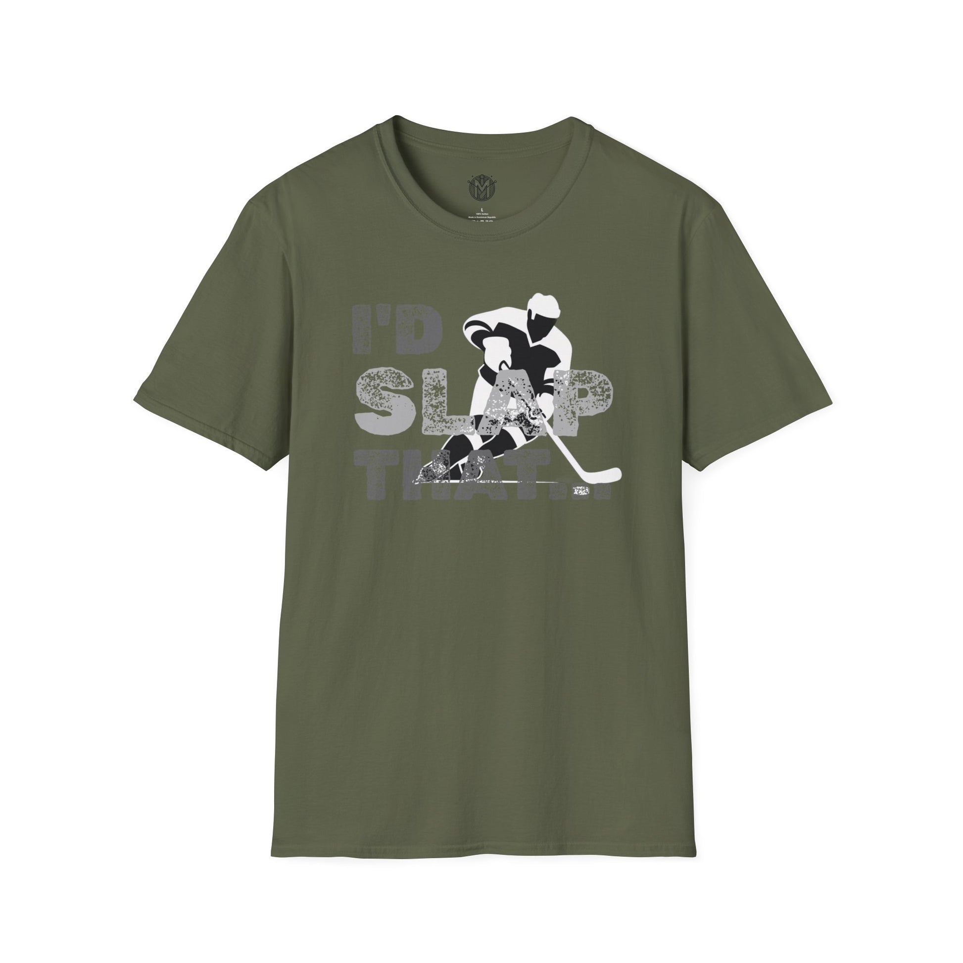 Unleash the spirit of the game with this exclusive I’d Slap That Mens Hockey Graphic Tee. Designed for enthusiasts of the rink, this tee features a bold, eye-catching print that showcases a dynamic hockey scene. Made with high-quality materials, it offers both comfort and durability for casual wear or during those intense game nights. This must-have t-shirt is perfect for any fan who takes pride in their love for the great game of hockey.