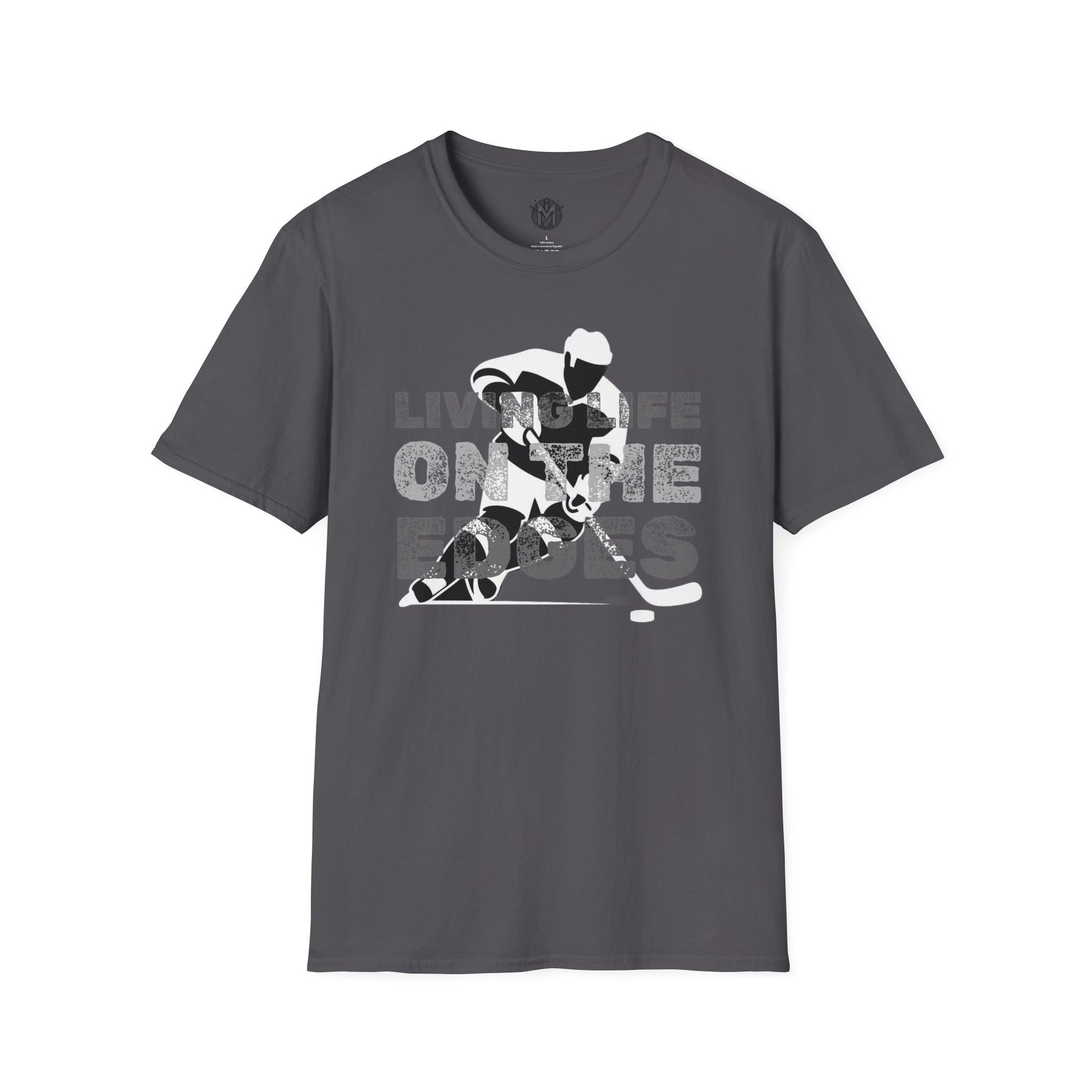 Embrace the thrill of the game with our exclusive Living Life on the Edges Men's Hockey Graphic Tee, featuring the dynamic “Living Life on the Edges” design. This tee captures the essence of hockey with elements that represent speed, agility, and precision. Perfect for fans who live and breathe the sport, it offers both comfort and style for casual wear or game day. The bold graphic showcases your passion for hockey, making it a standout piece in any wardrobe. Whether you’re on the ice or off, this tee is a must-have for those who love living life on the edges.