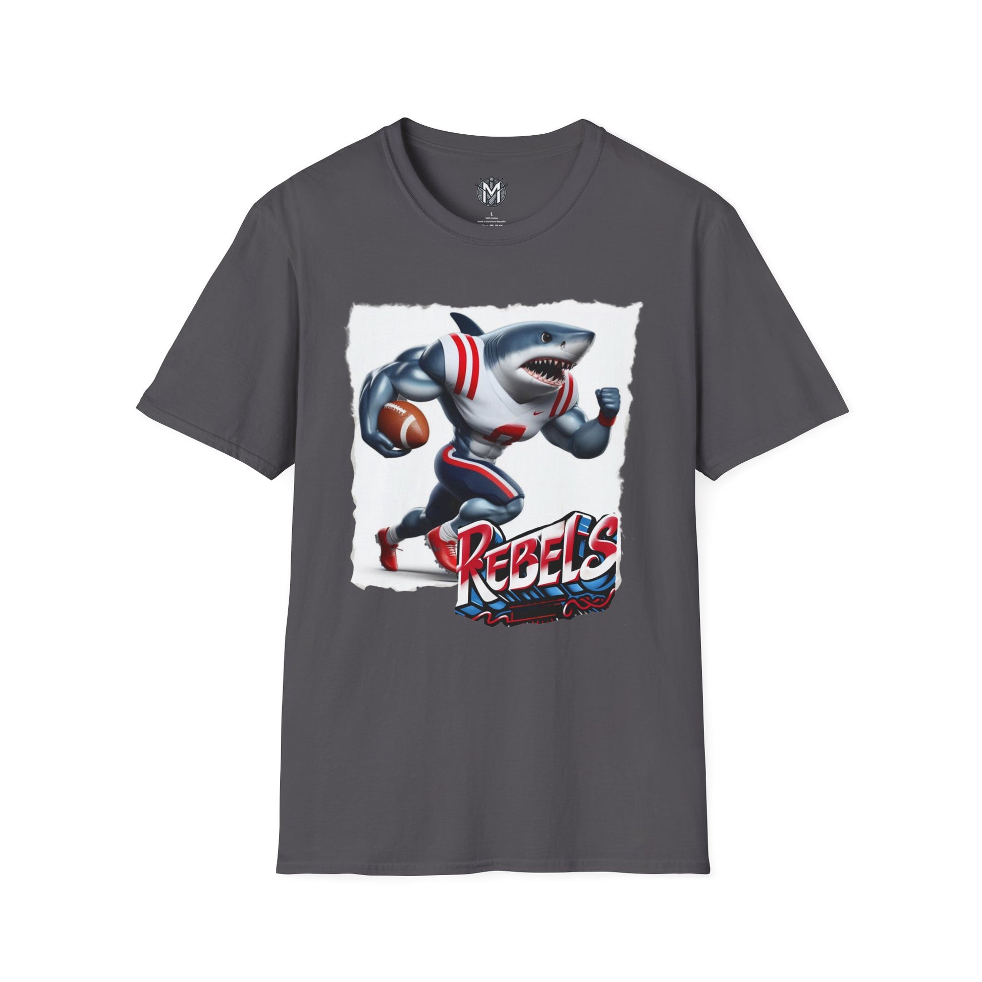 Show your team pride with this exclusive Ole Miss Rebels Mens College Football Graphic Tee. Featuring a dynamic illustration of the team’s mascot in action, complete with a football and bold “REBELS” text, this tee is perfect for game day or any day you want to support the Ole Miss Rebels. Made with comfortable and ethically sourced materials this t-shirt is designed to last. It’s a must-have for any dedicated Ole Miss Rebels fans and college football supporters.